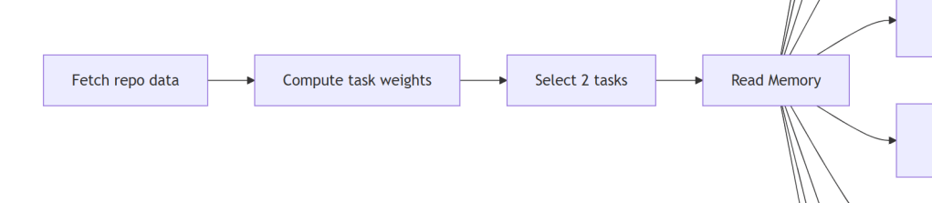 In my first version of Repo Assist, tasks were selected by round-robin: the agent tracked which tasks it had run most recently and rotated through them. This worked, but it had a problem – the agent was spending equal time on labelling in a repo with zero unlabelled issues as it was on investigating bugs in a repo with 200 open issues. The priorities of the repository weren’t reflected in the task selection.